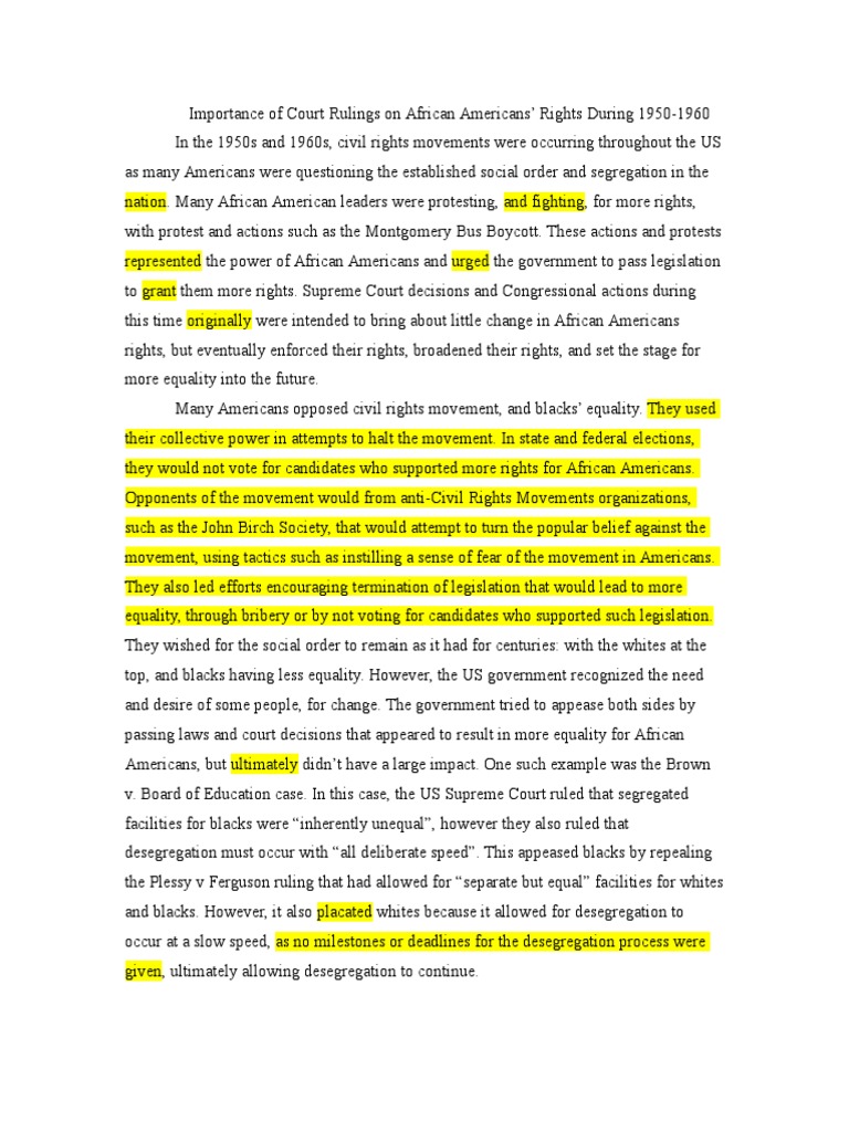 There was a civil rights movement essay when people were silent about their beliefs when it came to racial injustices. On May 17, there was a major case that changed the future of the United States greatly.